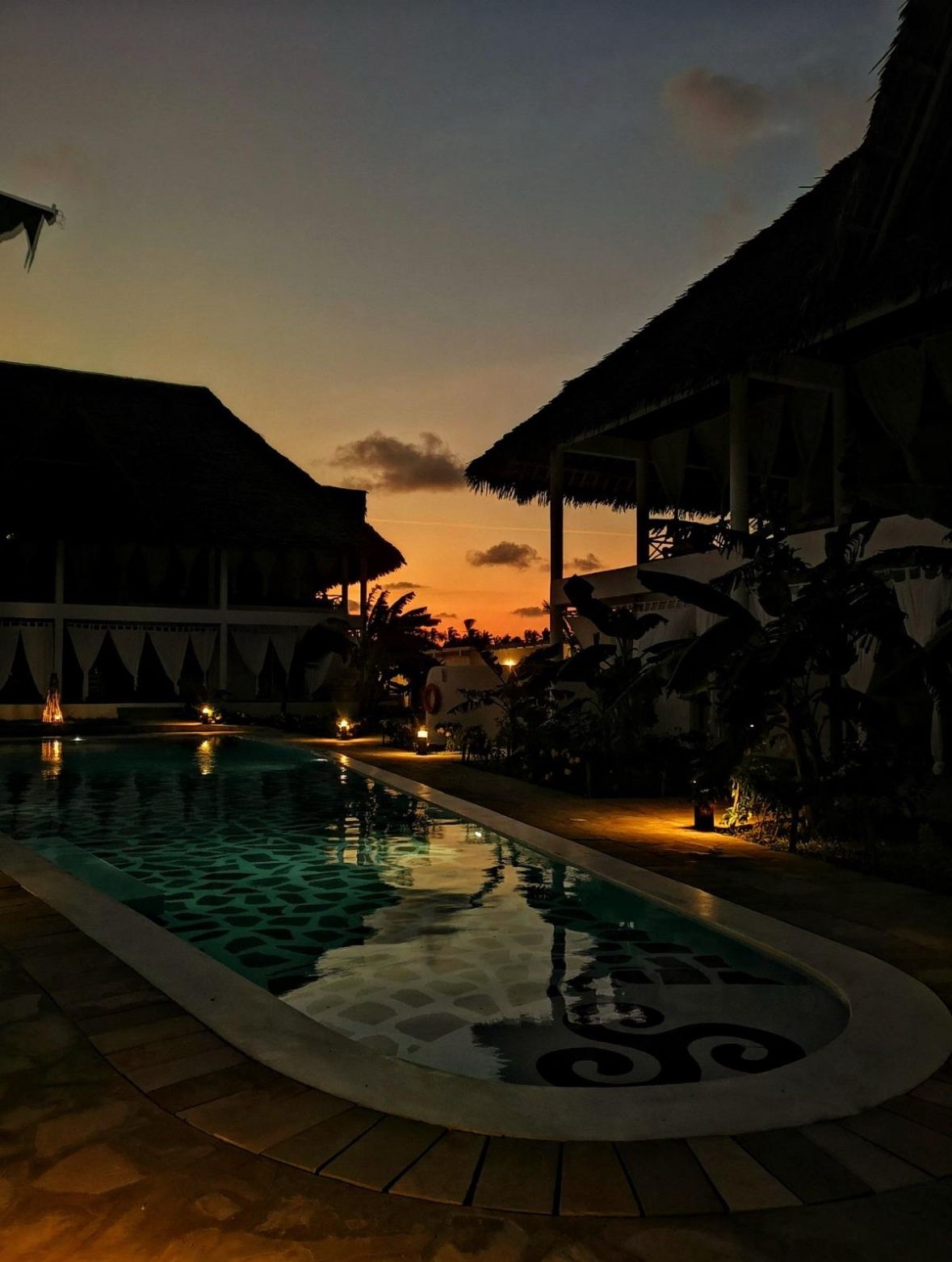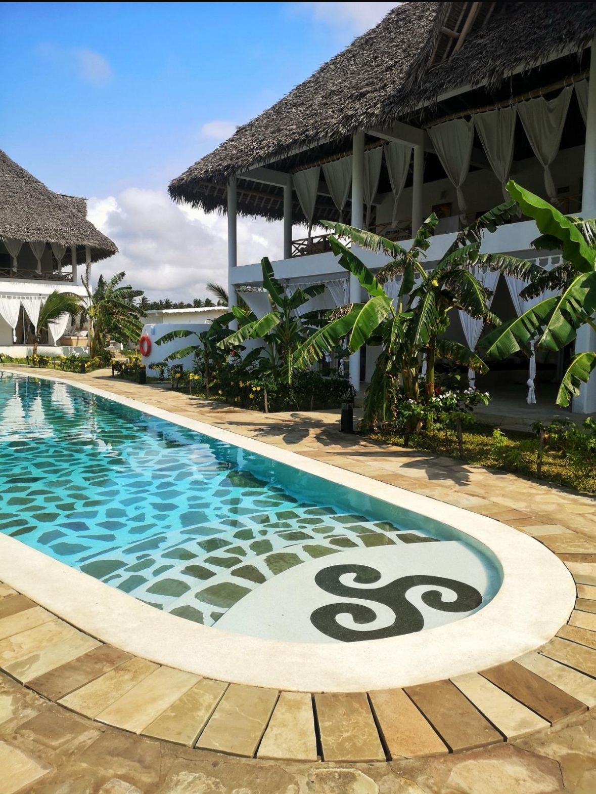 - Resort Pool & Poolside Gazebos – Expansive lagoon-style pool surrounded by palm-thatched gazebos and sun loungers